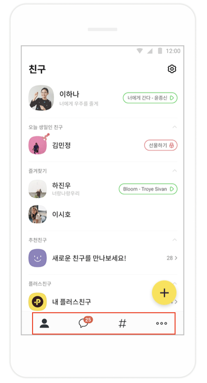홈 화면으로 넘어가면 네비게이션 바가 보입니다.