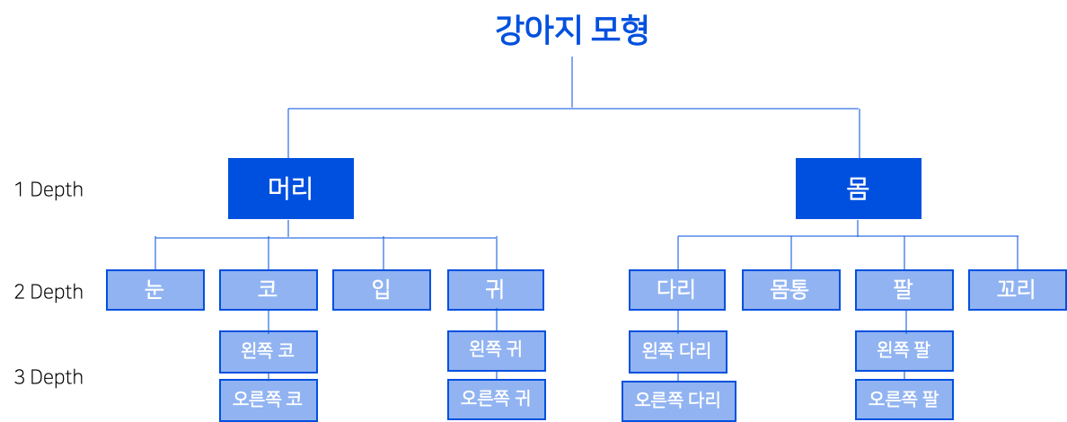 따라서 Depth에서는 문서의 깊이 별로 어떠한 구성 요소가 존재하며 Depth별로의 컨텐츠의 네이밍을 포함합니다.