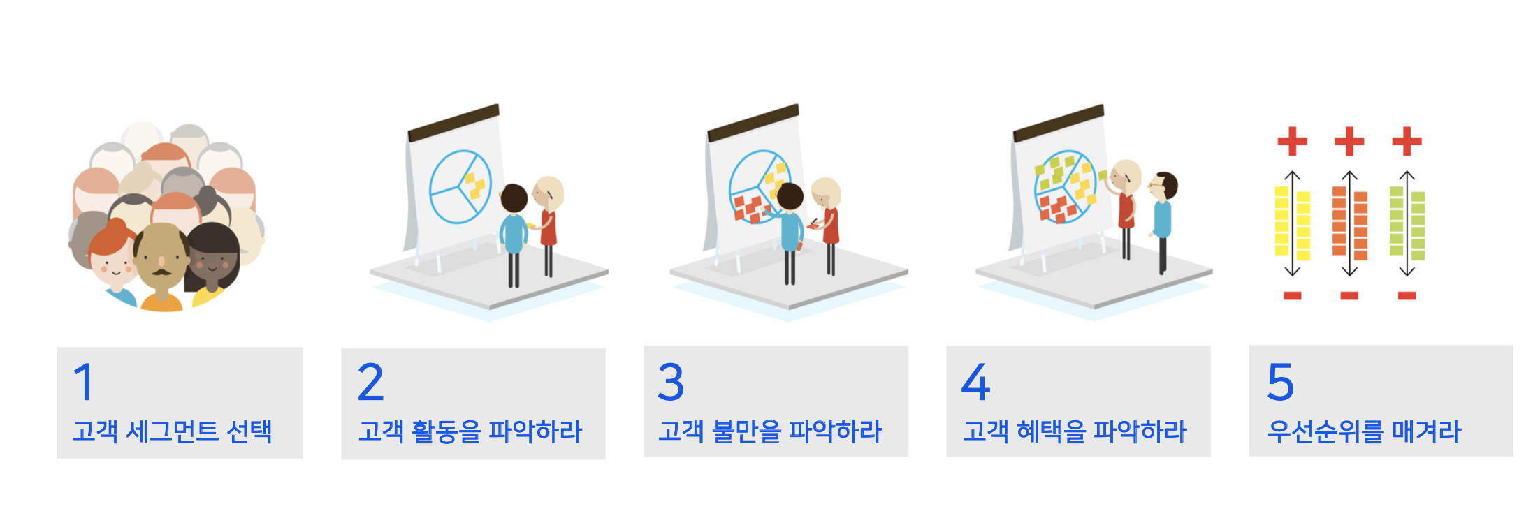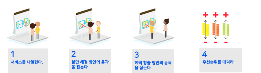 여기서 핵심은 고객 프로필에서 정한 우선순위에 초점을 맞춰 가장 극심한 불만을 느끼는 부분과