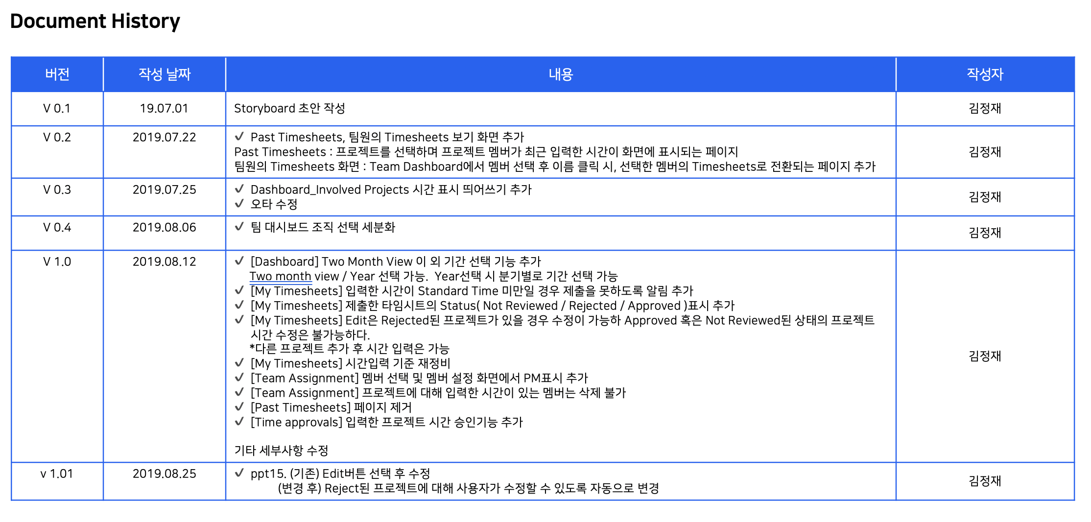 1. 버전 정보 (Document History)