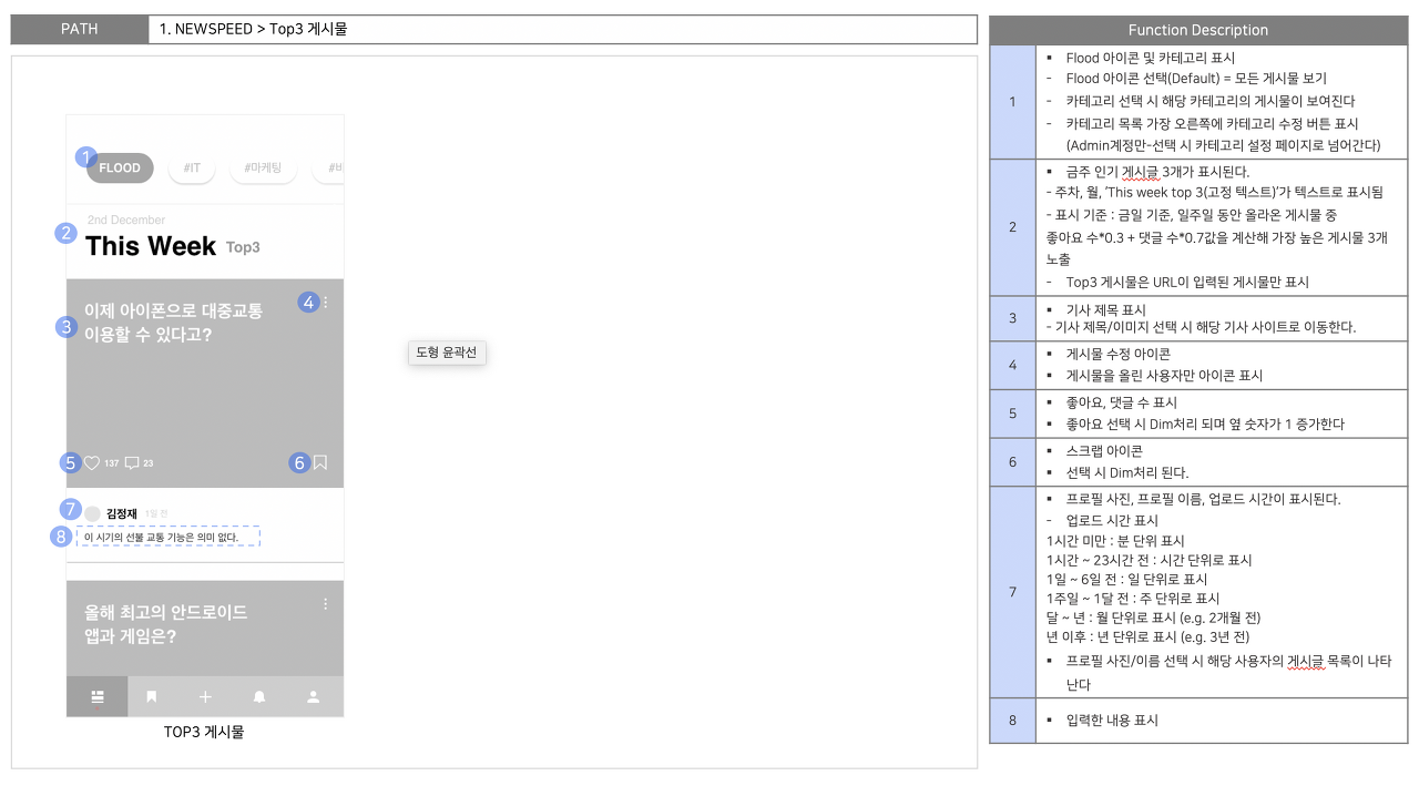 서비스의 스토리보드. 기능에 대한 상세 설명을 작성한다.